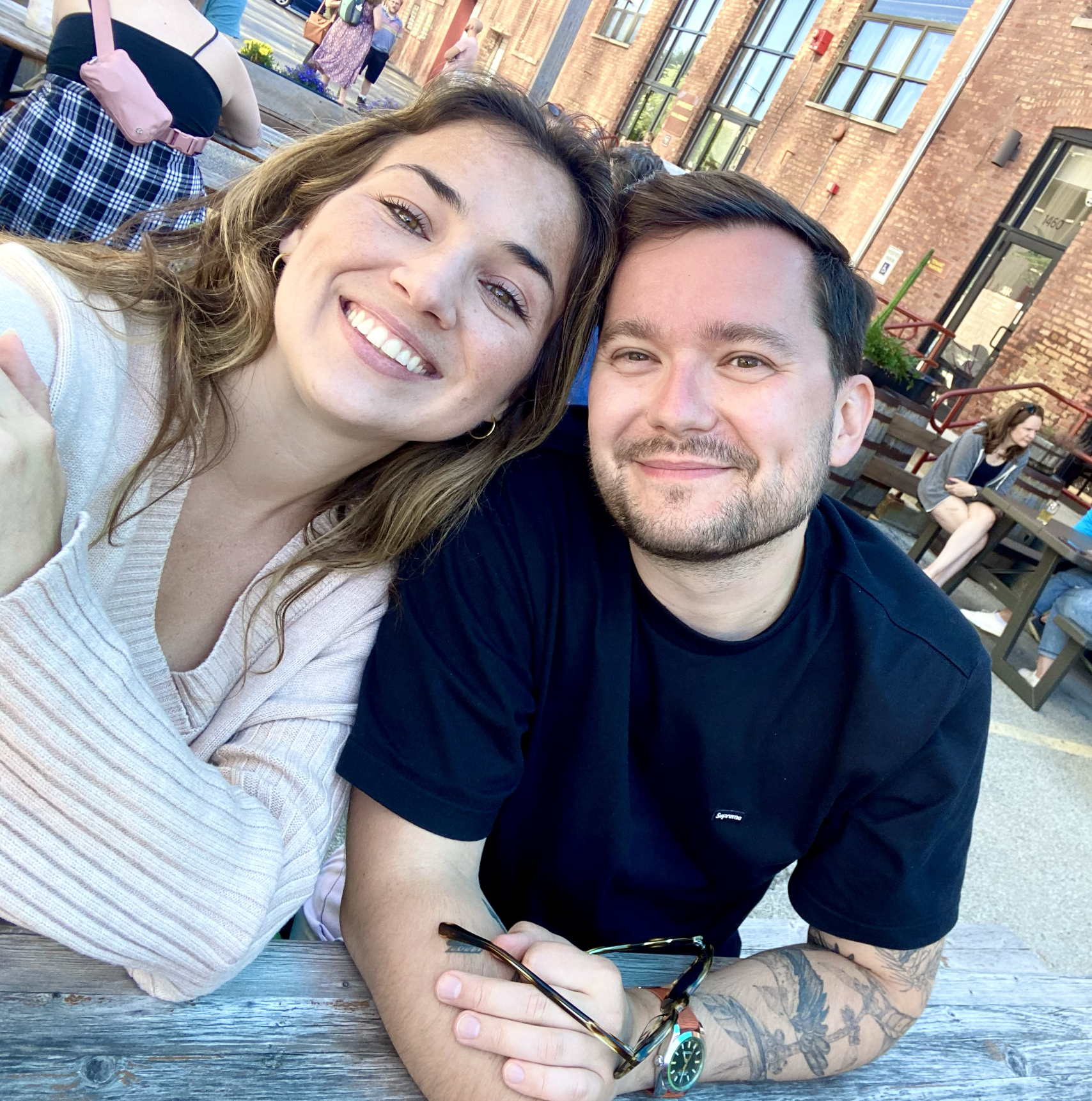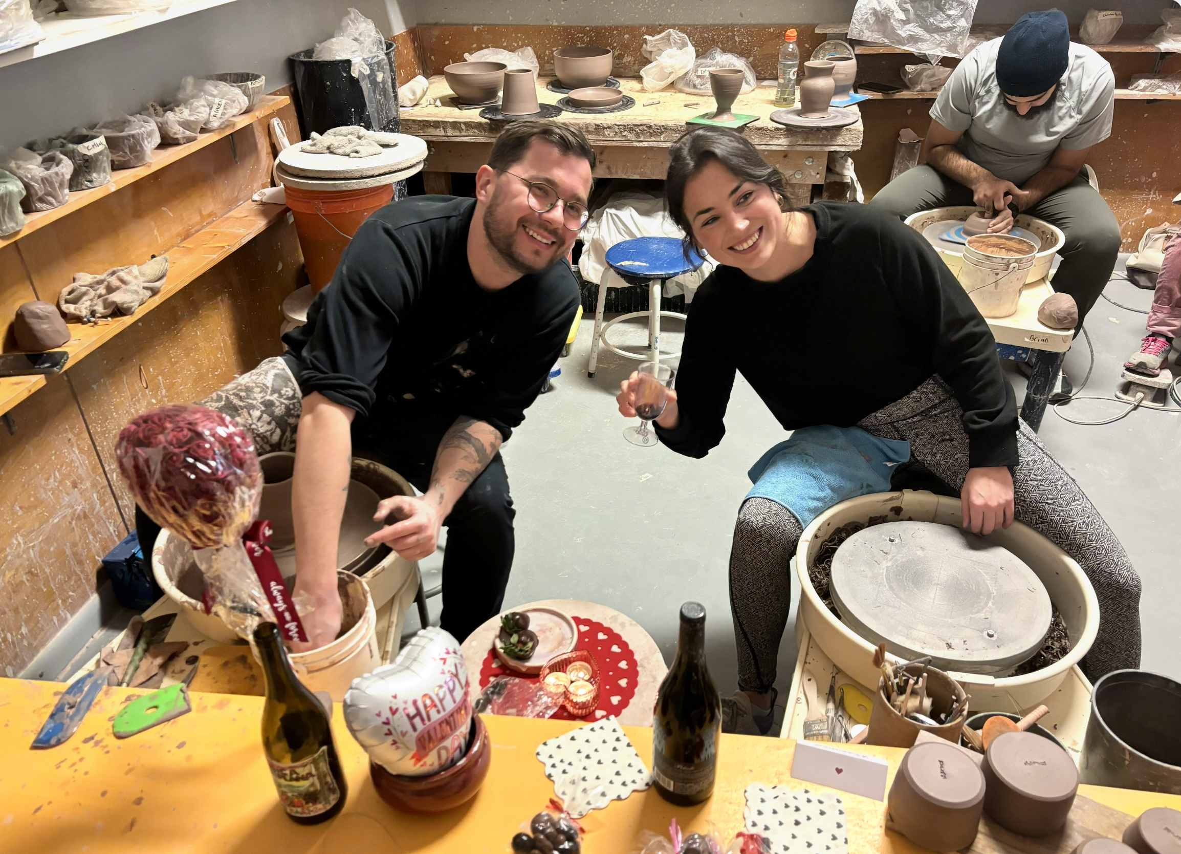 In 2021, we both found ourselves at Park West Ceramics. For Marcin, it was a creative escape; for Taylor, a way to build community in a new city. Neither of us expected to meet a life partner there—in fact, Taylor and her friends frequently joked about never dating someone from the studio to protect the "safe haven," and Sunday hangs we all cherished.